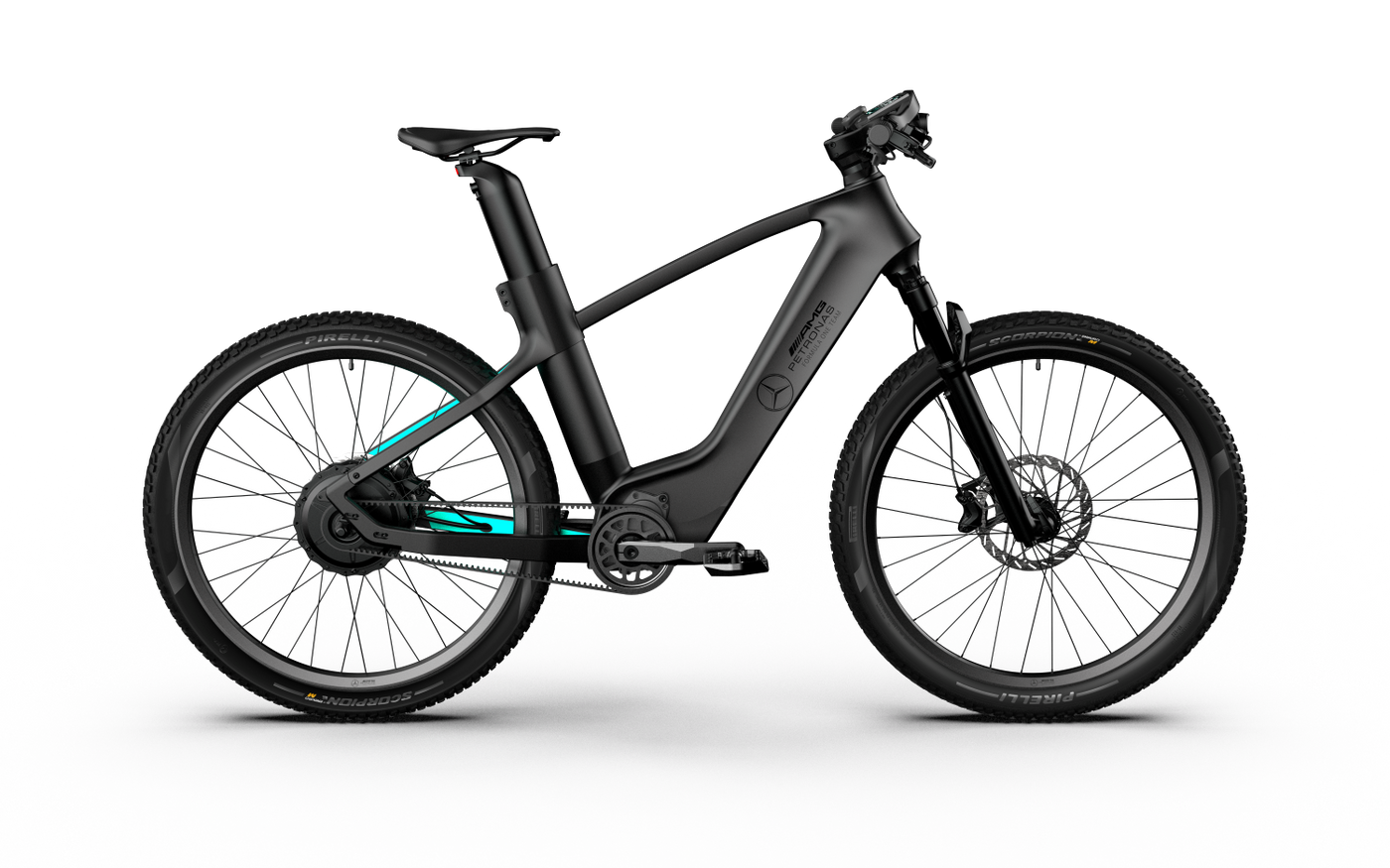 Designed for any terrain, the rugged Pirelli rubber compliments high performance Mercedes-AMG PETRONAS F1 Team front suspension forks.Every element of motorsport performance has been considered, right down to the oversized 4 piston calipers and slotted disc brakes. Some of the largest brakes ever fitted to a production eBike.