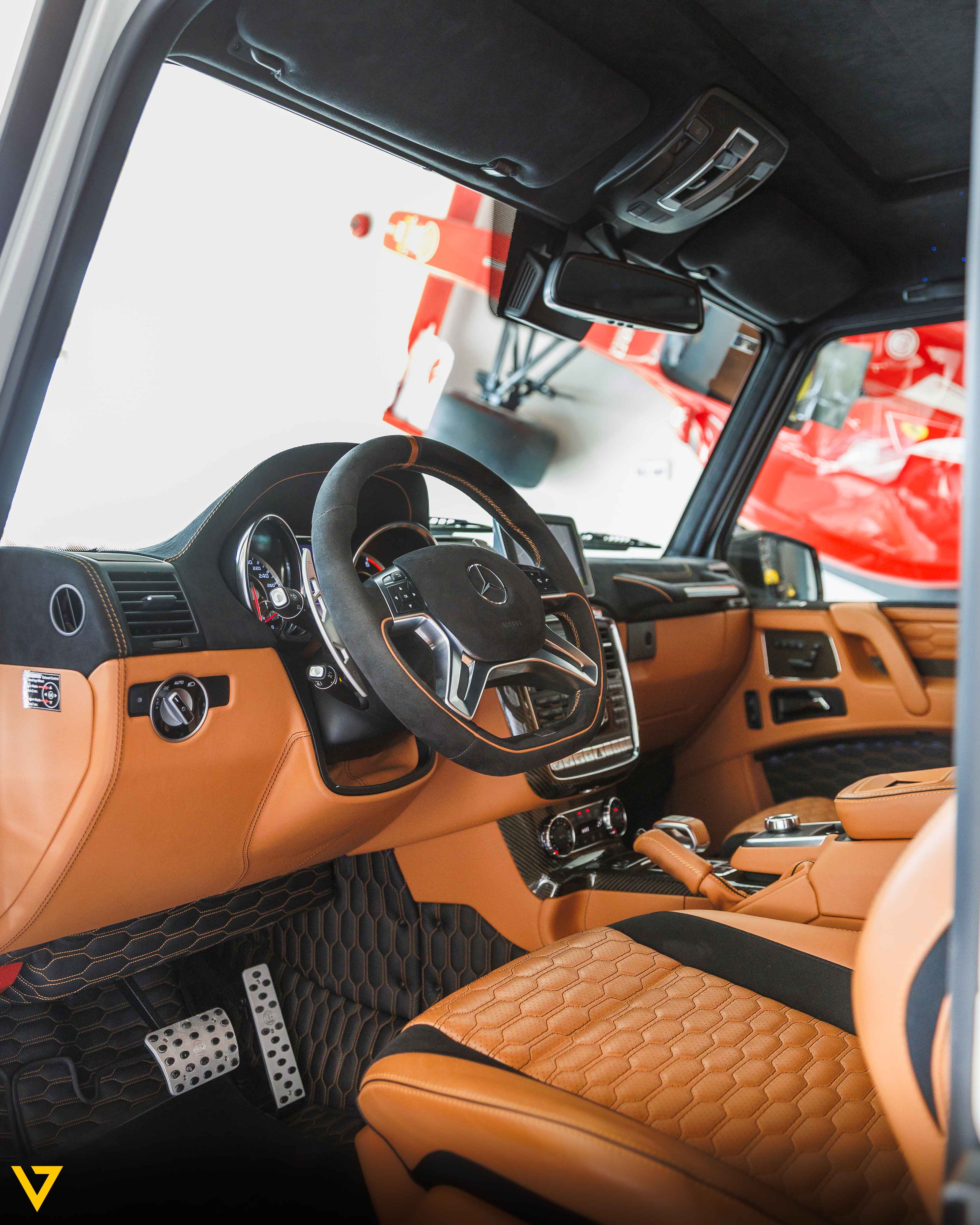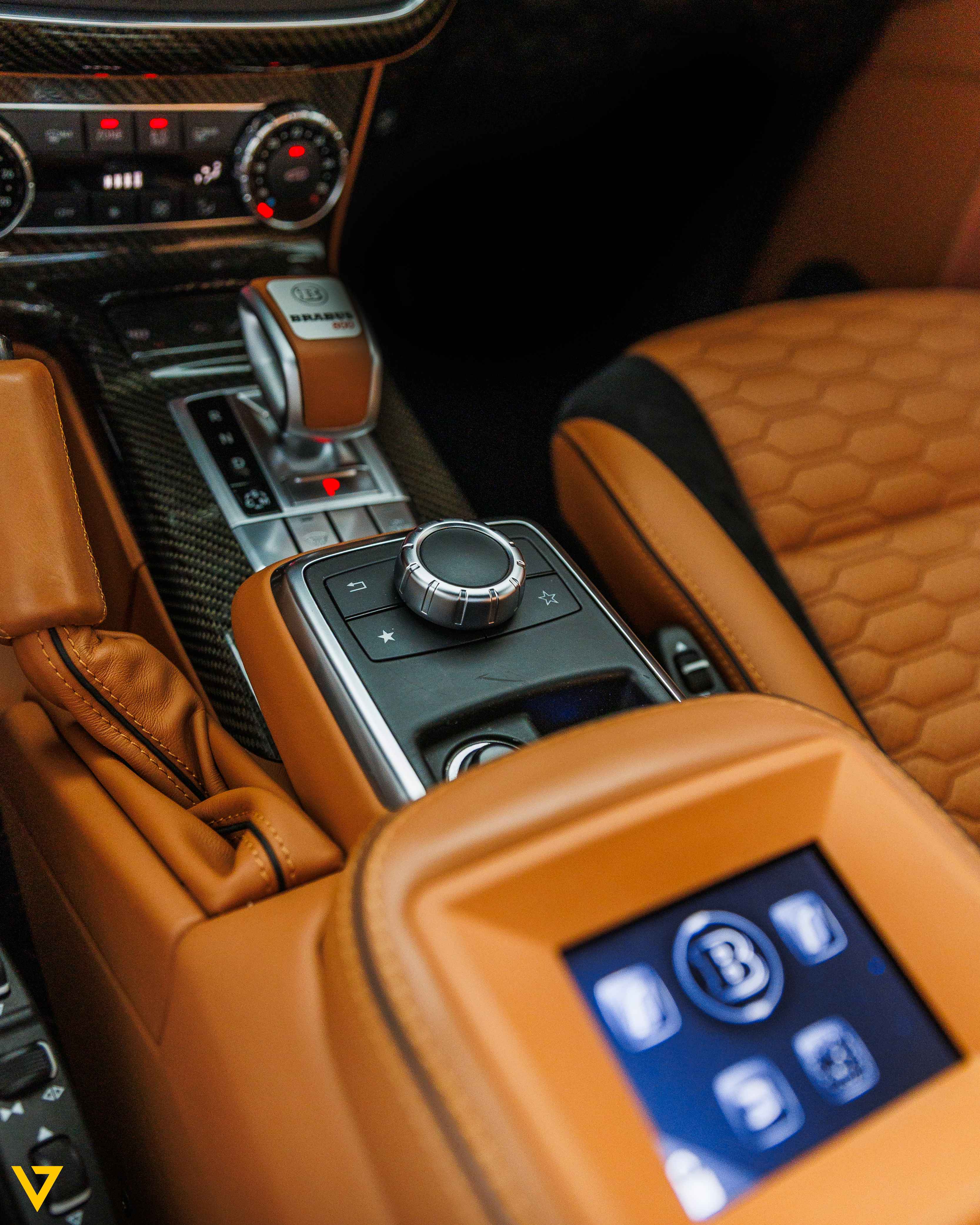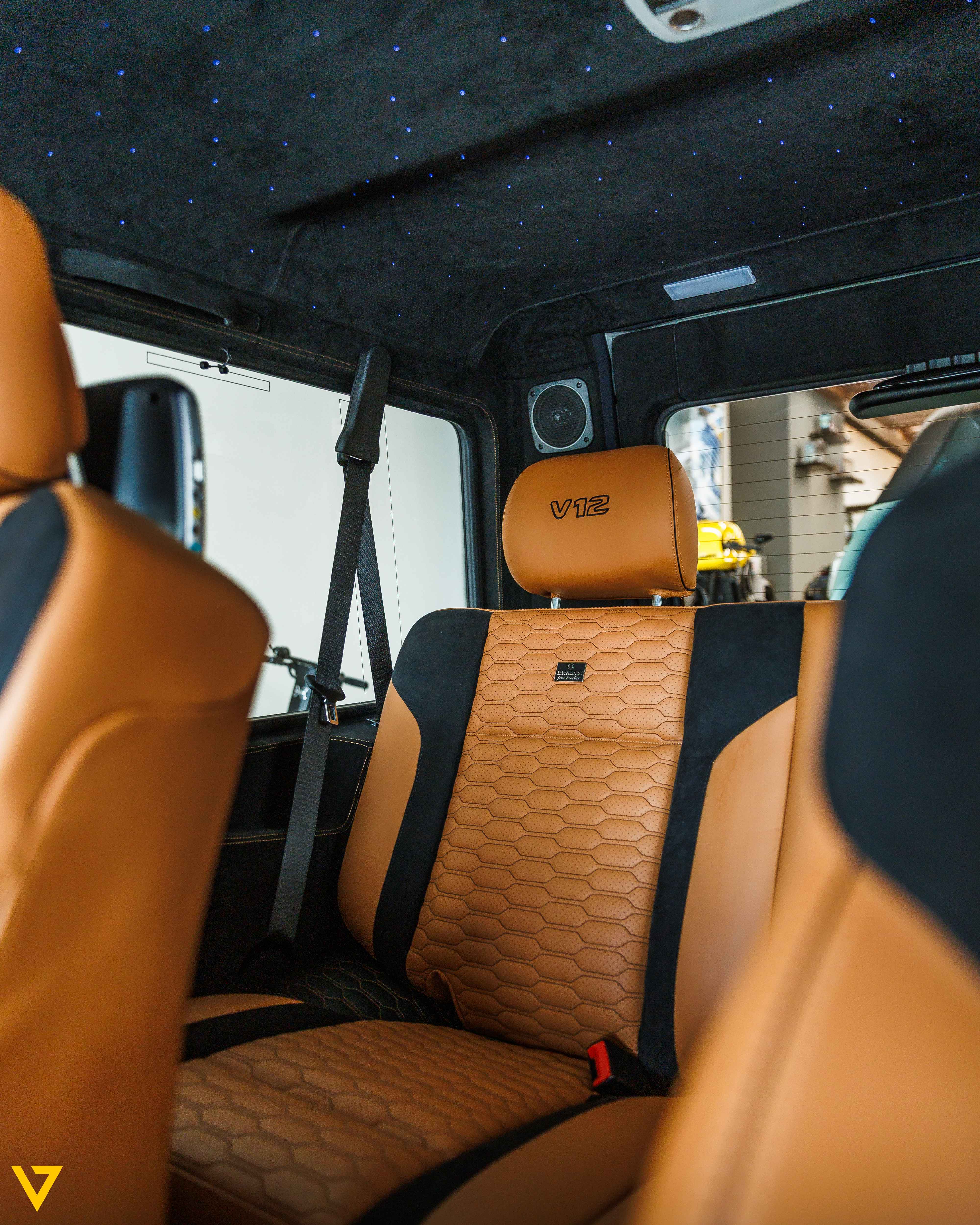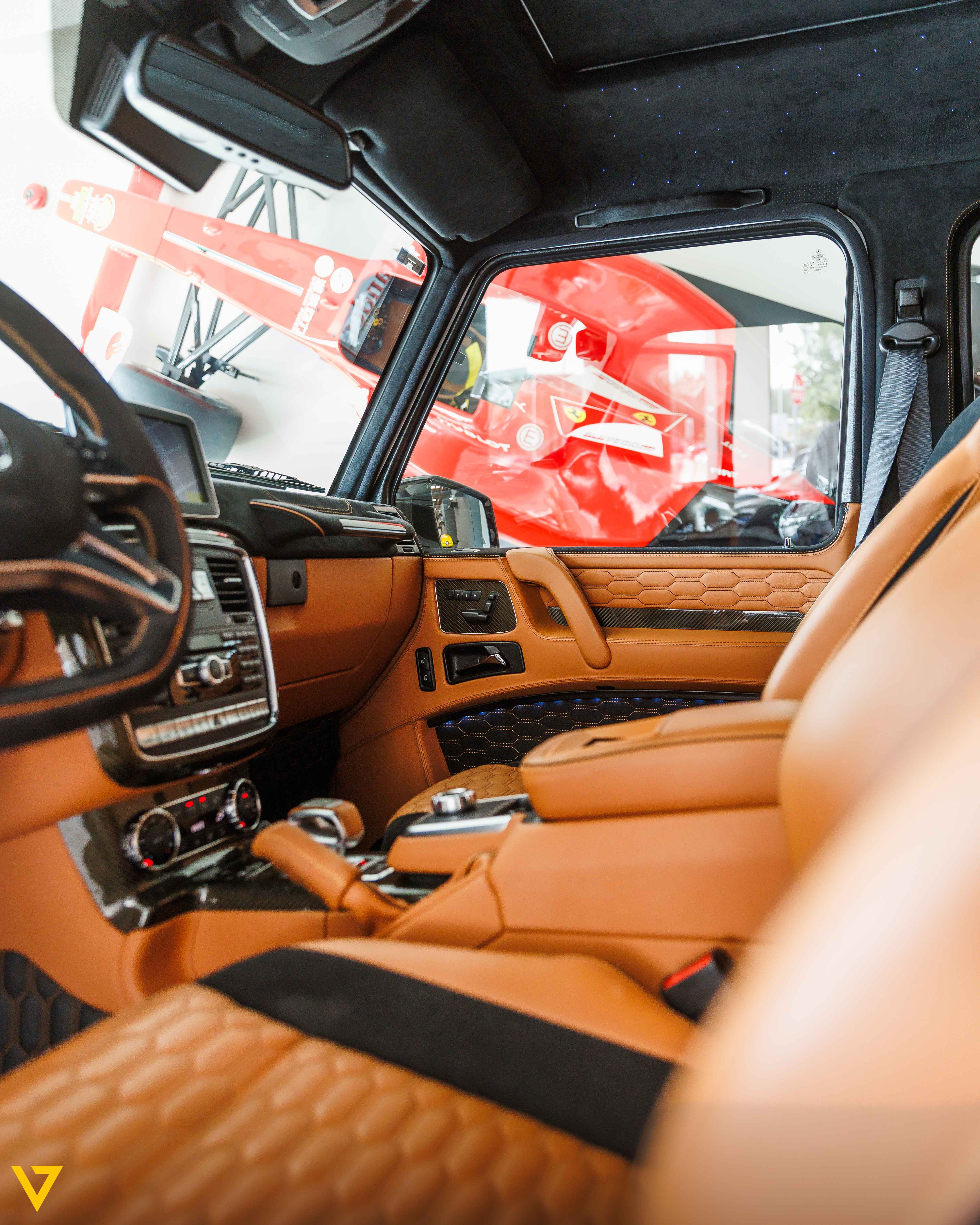 Inside, the cabin showcases a refined blend of Tan and Black leather, elevated by Brabus interior enhancements. Every detail reflects craftsmanship and comfort,creating an atmosphere that balances luxury with authority. Rear entertainment screens add an extra layer of convenience and sophistication, ensuring a premium experience for all passengers.