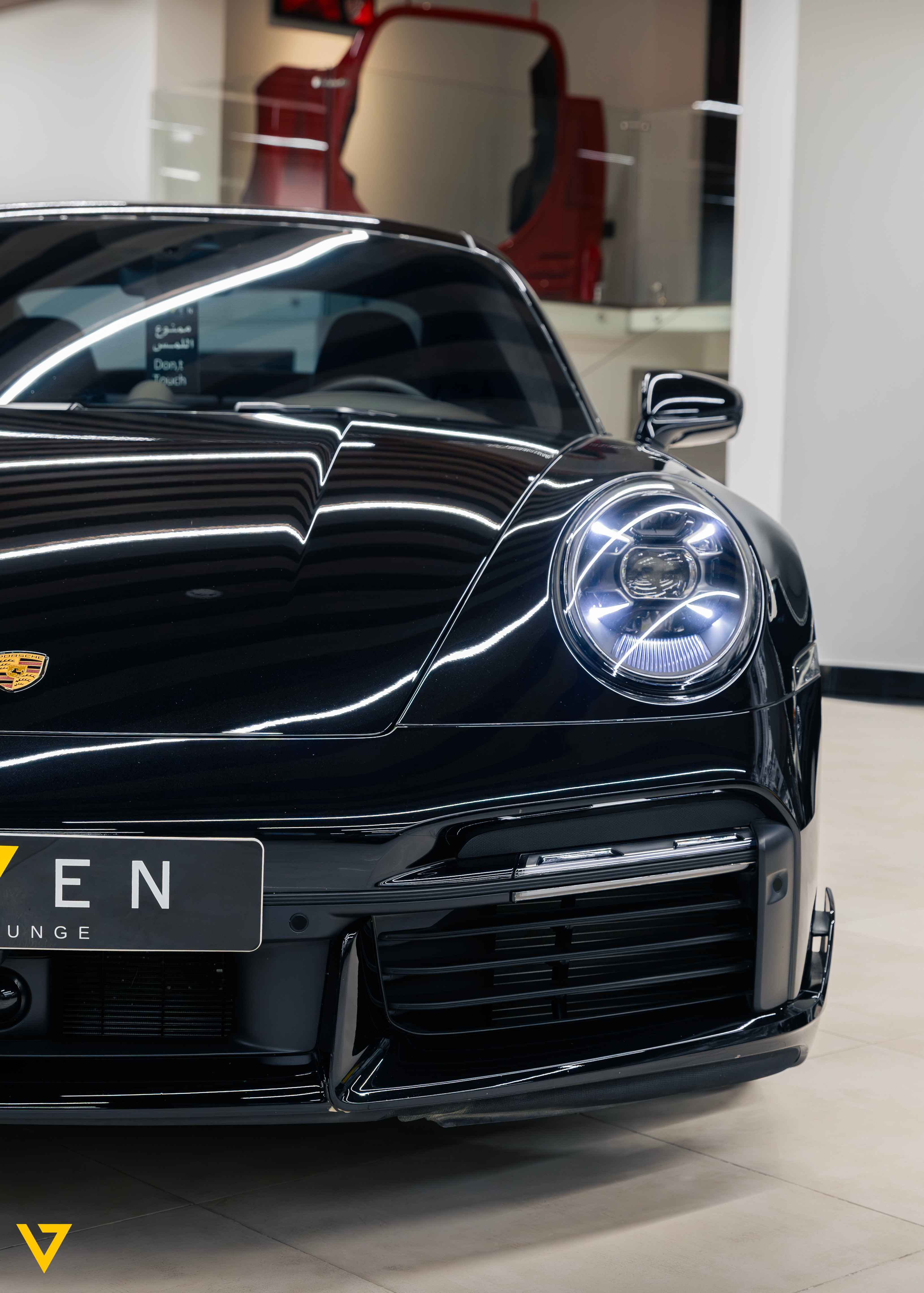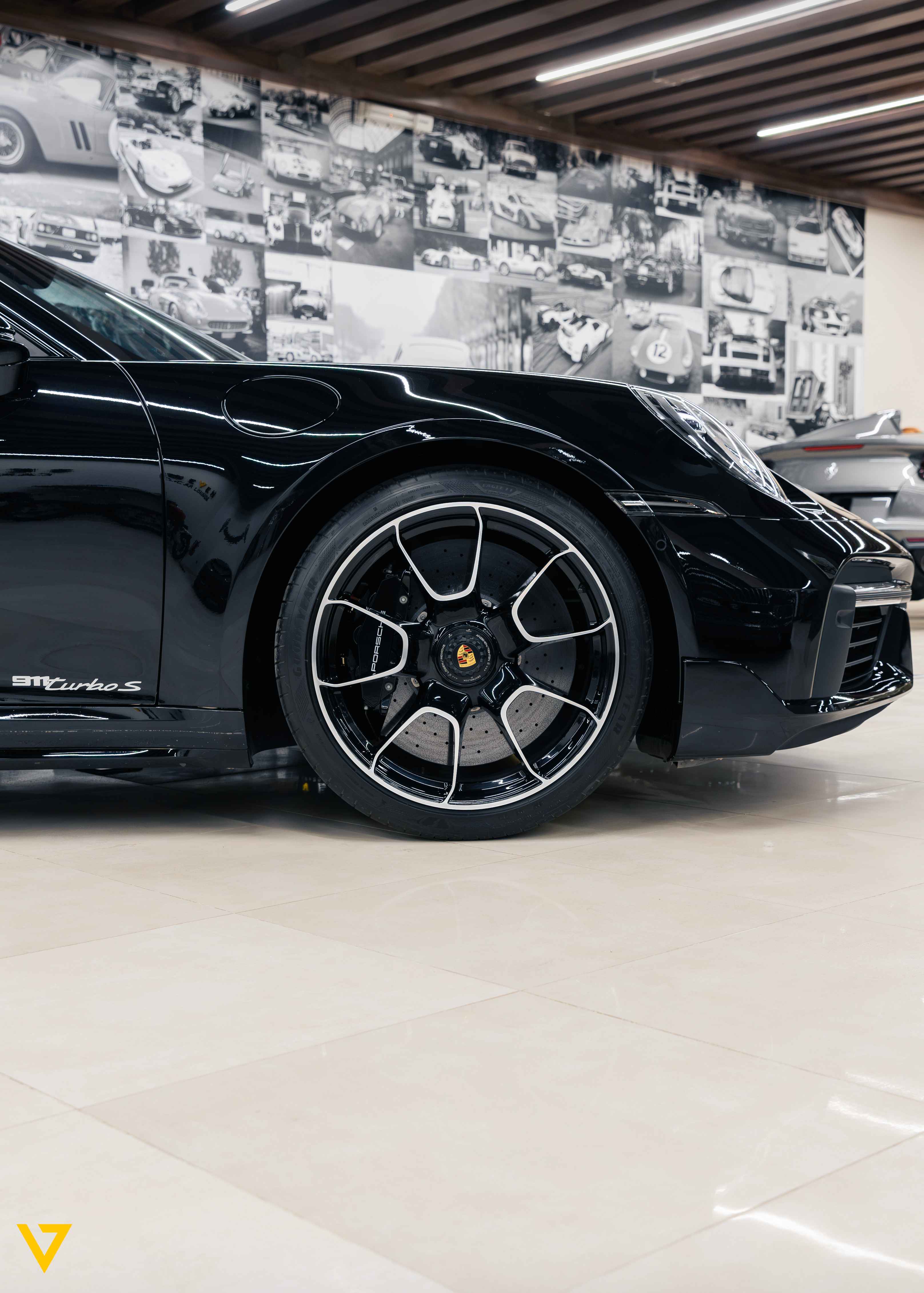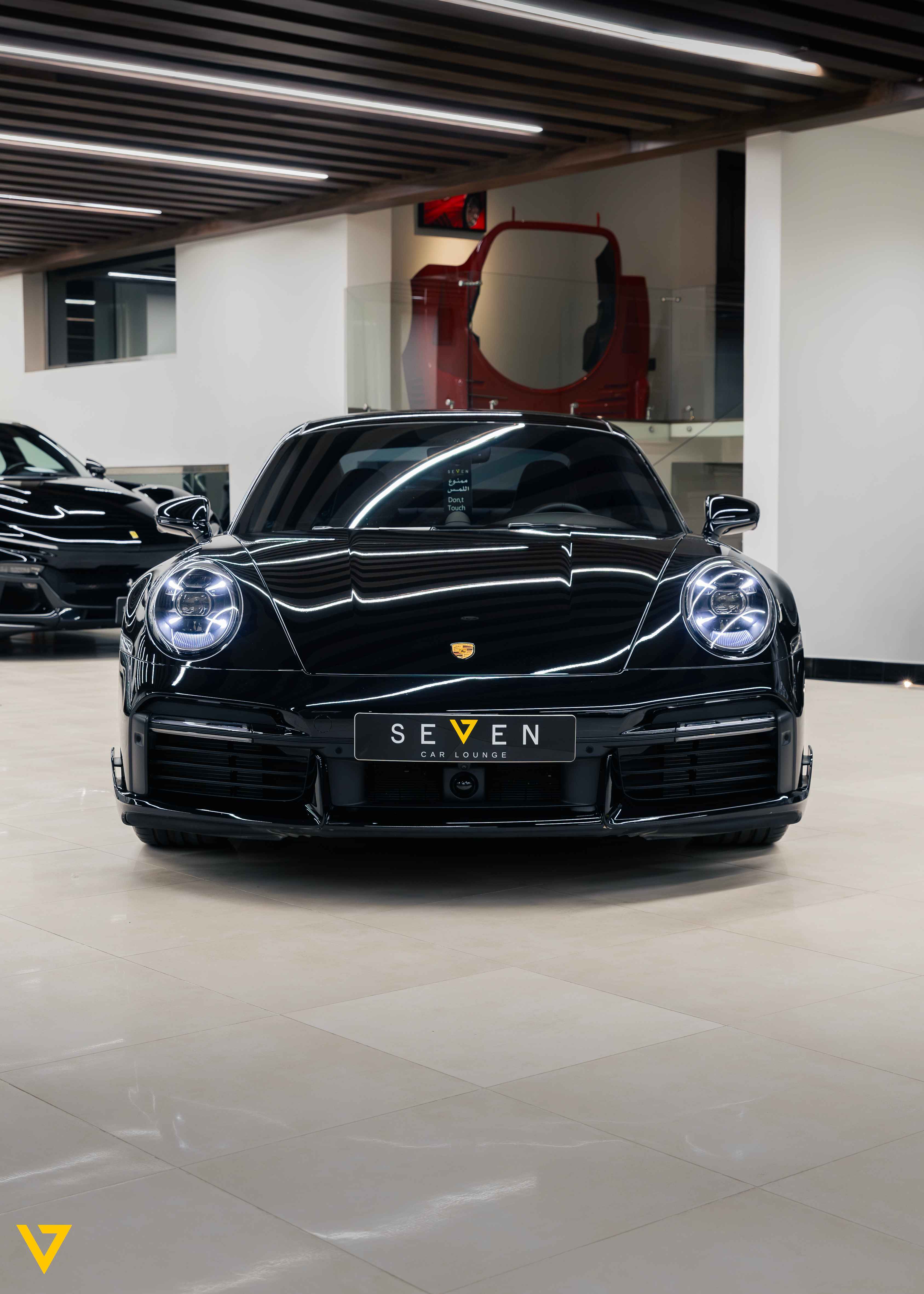 The Porsche 911 Turbo S showcases a timeless silhouette refined by purposeful aerodynamics. Finished in classic Black, its wide stance, sculpted lines, and signature proportions reflect both performance intent and understated elegance. The 20-inch front and 21-inch rear wheels enhance stability while reinforcing its unmistakable Turbo presence