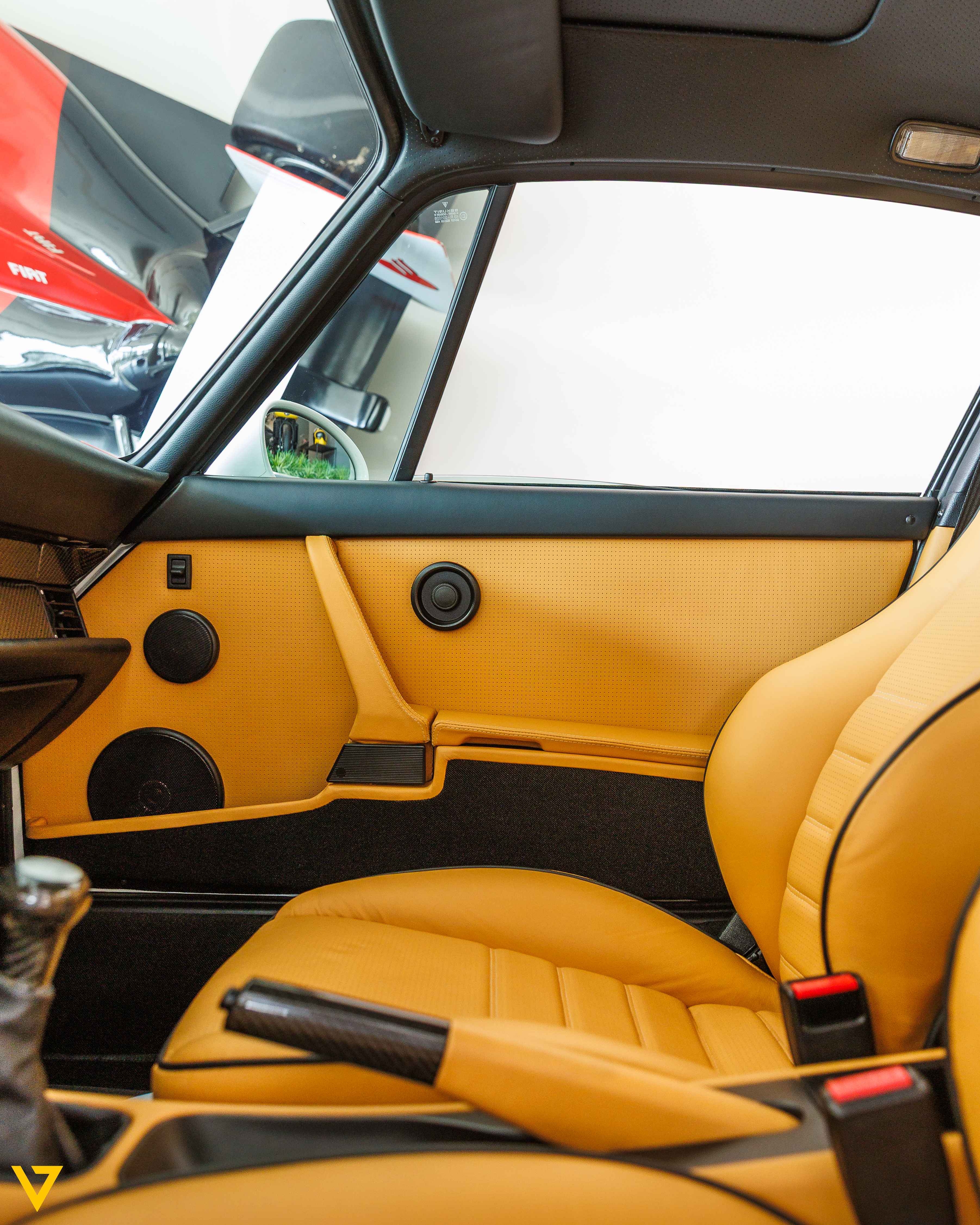 Inside, the cabin features a refined Tan interior that blends classic Porsche design with driver-focused ergonomics. The layout is clean and functional, emphasizing comfort without distraction. Electric adjustment for the comfort seats ensures an ideal driving position, while high-quality materials and precise detailing create anauthentic, period-correct atmosphere.
